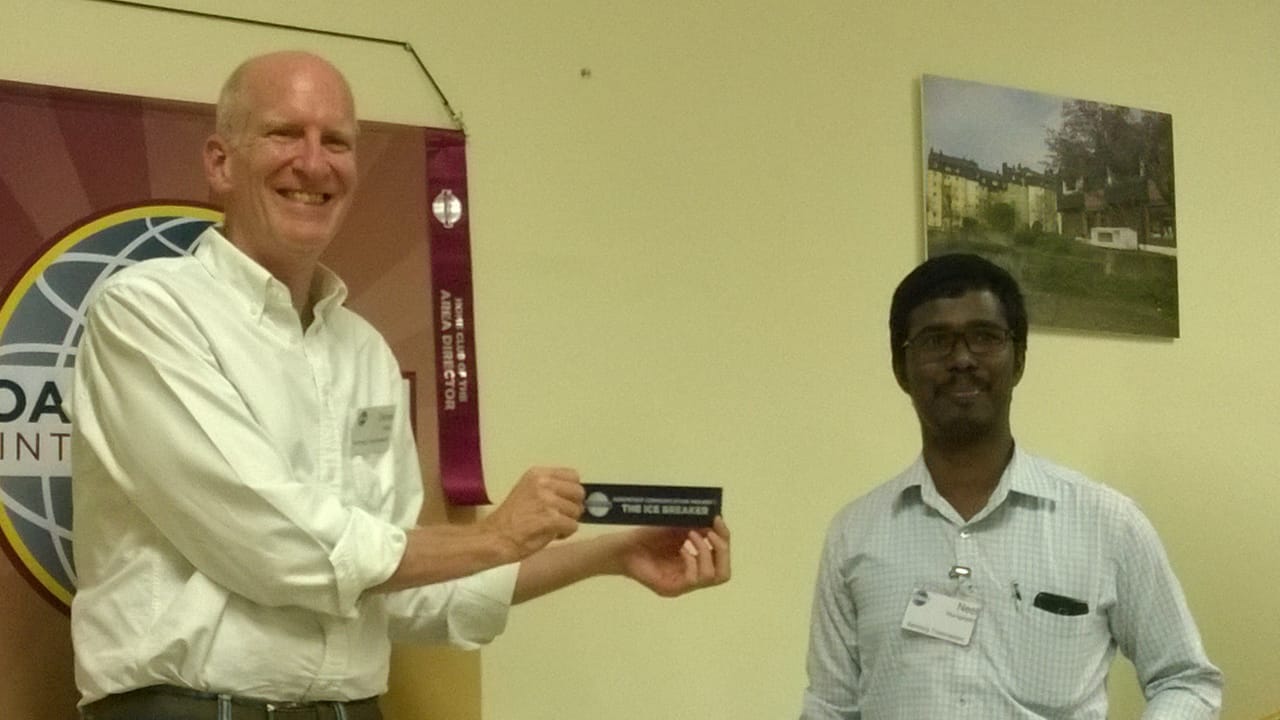 At our last meeting on Monday 14th we heard two successful ice-breakers by Astrid and Steve and two awards, ice-breaker ribbons, were given out by our Club President Neel.